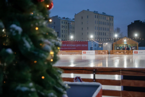 На катке будут организованы тёплые раздевалки, камеры хранения и вендинговые аппараты с горячими напитками и снеками. Площадь ледовой площадки – 1100 квадратных метров. Праздничную атмосферу создаст рождественская ель и музыка.