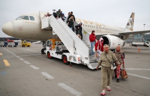 Рейс EY839 приземлился сегодня днём в Международном аэропорту Казани, где его торжественно встретили, ознаменовав открытие нового транспортного коридора как для деловых путешественников, так и туристов. Рейсы выполняются по вторникам, четвергам и воскресеньям и идеально подходят для поездок на выходные или продолжительных отпусков.