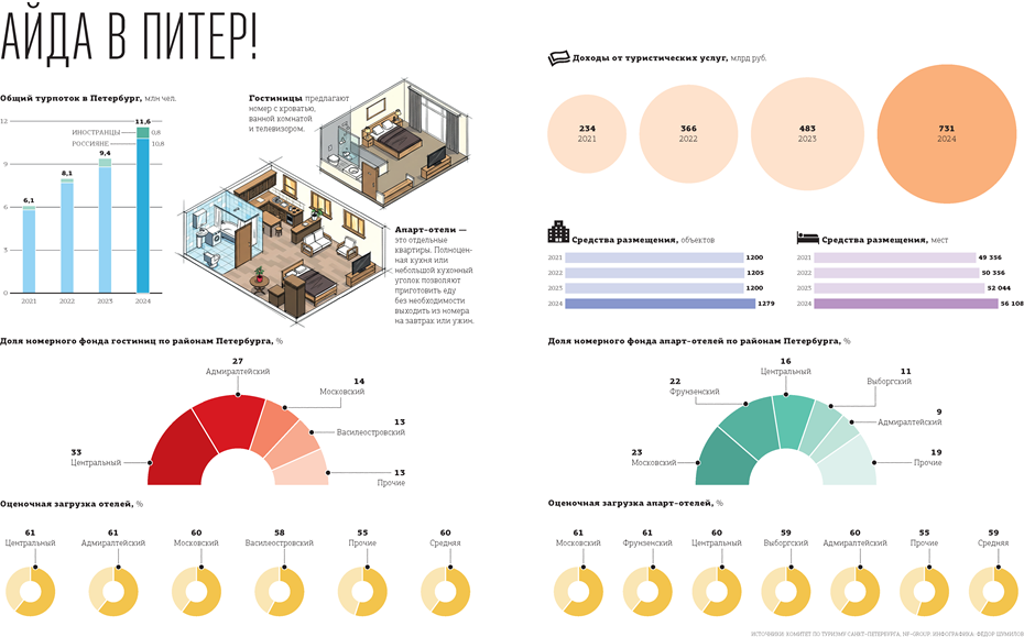 — Недавно в Калининском районе открылся отель на 802 номера — это существенное пополнение номерного фонда. Всего в городе около 1300 отелей и порядка 58 тыс. номеров, этого достаточно для приёма больших объёмов круглогодично. До конца года ожидается ещё одно открытие, новые объекты запланированы и на следующий год.