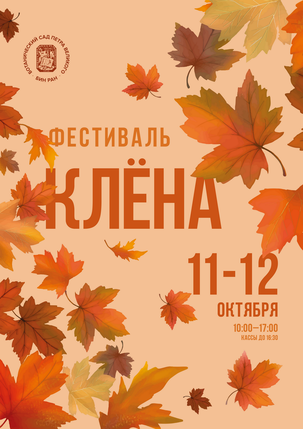 11–12 октября 2025 года — время любоваться великолепием кленовых листьев, тем более что в Ботаническом саду Петра Великого можно встретить более 50 видов клёна!