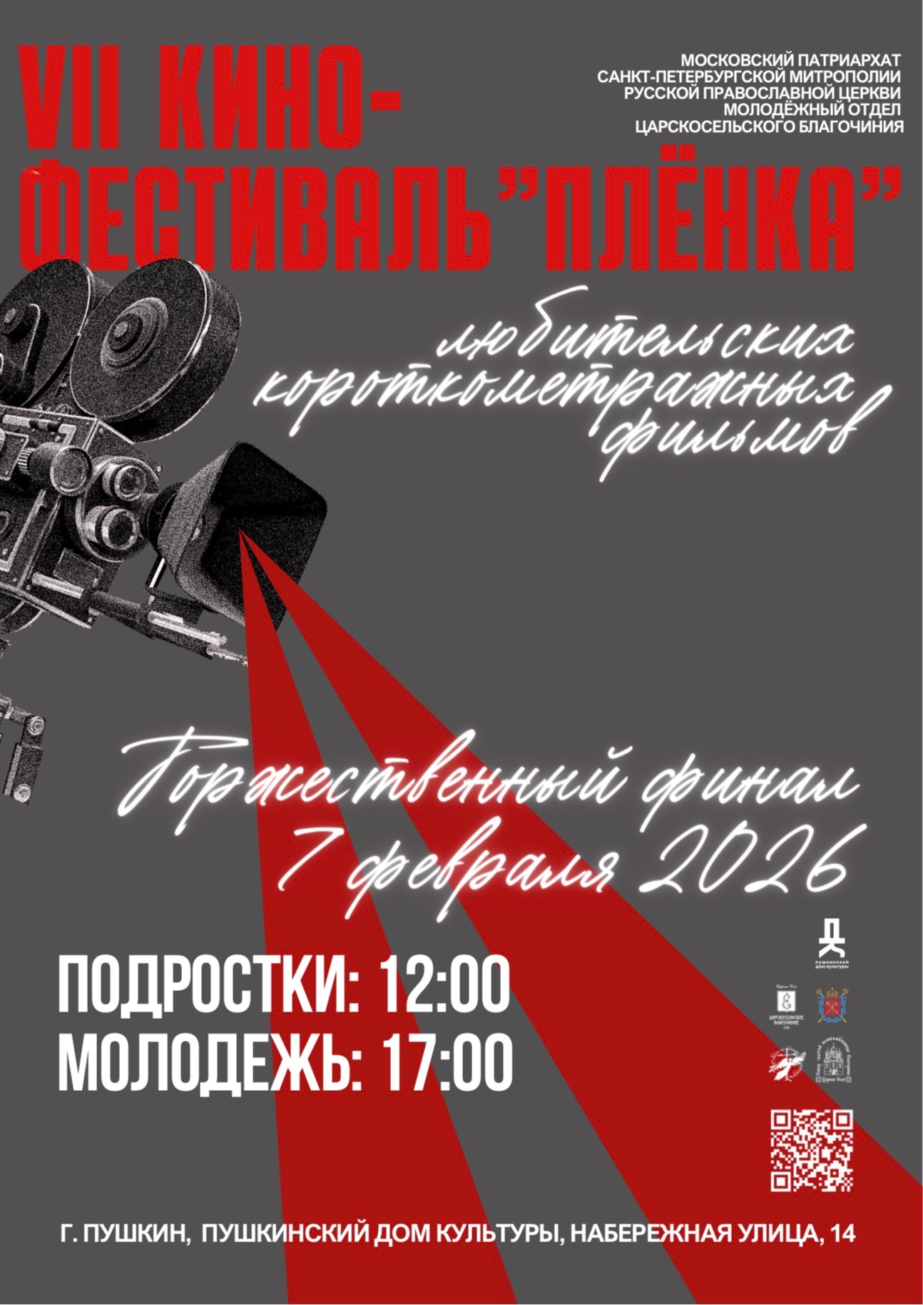 7 февраля в Царском Селе пройдёт финал VII кинофестиваля любительских короткометражных фильмов «Плёнка» в Пушкинском Доме Культуры.