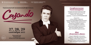 В первый день открытия Фестиваля «CRESCENDO» в Пскове прозвучат премьерные произведения: «Через лавры и рубцы» А. Семенова и «Con Cello» П. Карманова наряду с уже известными композициями П.Чайковского, А.Арутюняна, Ж.Бизе, М.Бруха.