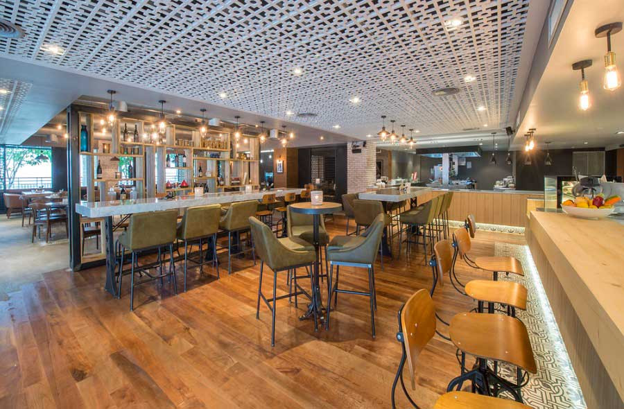 Эклектичный Metzo’s, открытый в октябре 2015 года, сочетает элементы индустриального дизайна с мавританскими мотивами. Винный бар в Metzo’s был задуман как центральное место для веселого времяпрепровождения гостей, и эта его роль подчеркнута длинными общими столами. Сердце Metzo’s – барная стойка с огромным выбором горячих и прохладительных напитков, закусок, вин, крафтового пива и фирменных коктейлей Metzo’s.