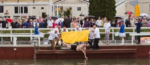В среду, 27 июля, почетного соню сбросят с причала в море в 7.00. С этого и начинается веселая и богатая программа дня, апогеем которой будет вечерний концерт с участием знаменитых финский поп-исполнителей.