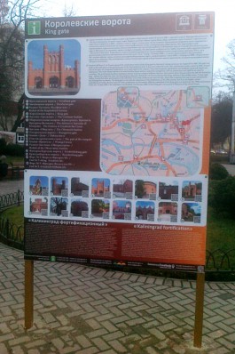 Чтобы создать удобную систему туристической навигации в Калининграде информационные щиты были установлены возле следующих объектов: «Башня Дона», «Башня Врангель», крепостные ворота «Фридрихсбургские», крепостные ворота «Королевские», крепостные ворота «Закхаймские», крепостные ворота «Фридландские», редюит бастиона «Обсерватория», редюит бастиона «Обертайх», редюит бастиона «Купфертайх», бастион «Грольман», «Крепость Фридриха Великого», оборонительная казарма «Кронпринц», форт № 5 «Король Фридрих III» и участок крепостной стены на южном берегу Верхнего пруда. Этот маршрут разработан совместно с Ассоциацией экскурсоводов и гидов-переводчиков Калининградской области.