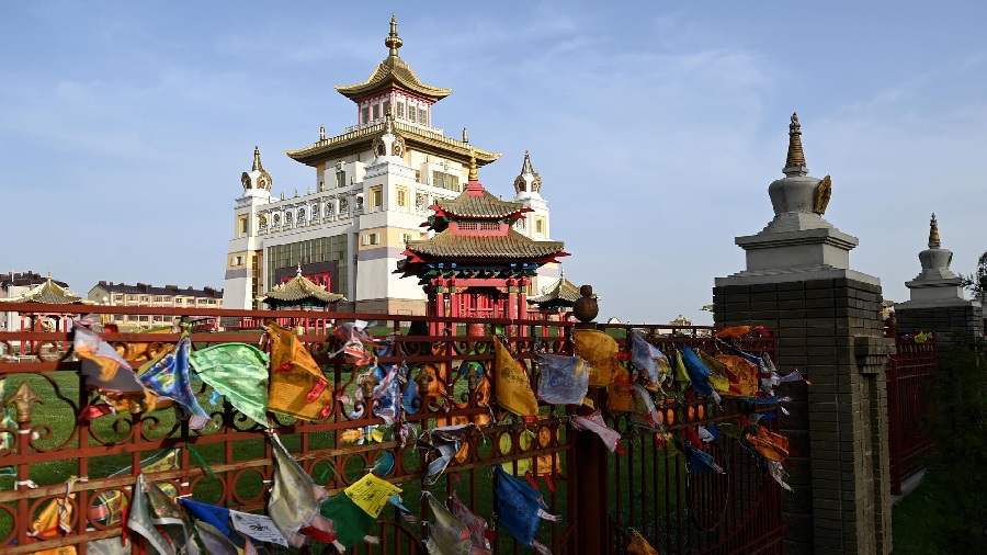 Территория храма Золотая обитель Будды Шакья-Муни в Элисте