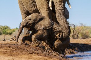 На видео ниже можно увидеть, как группа взрослых слонов и их детенышей купается в специально приготовленной для них столь любимой грязевой ванне.