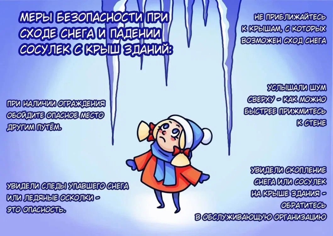 МЧС России призывает собственников зданий, арендаторов, управляющие компании и органы местного самоуправления своевременно очищать кровли от снежных навесов, а желоба и свесы — от наледи и сосулек.