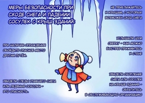 Населению рекомендуется: не заходить в опасные зоны, обозначенные сигнальными ограждениями; избегать нахождения под снежными навесами; своевременно проводить очистку кровель в частных домовладениях.