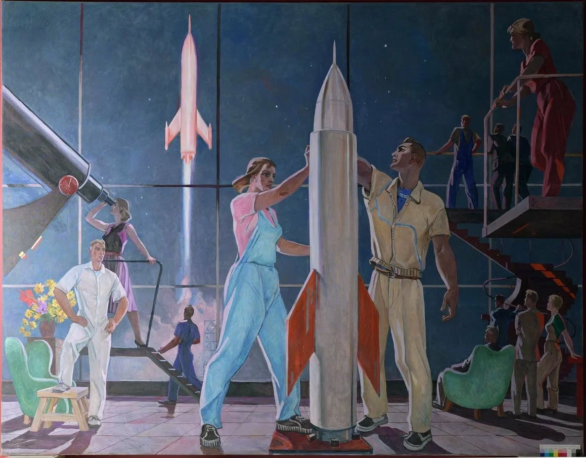 В корпусе Бенуа Русского музея представили масштабное живописное произведение Александра Дейнеки «Покорители космоса» из Луганского художественного музея после завершения сложнейшей комплексной научной реставрации.