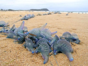 Для справки: физалии - колонии из полипоидных и медузоидных особей. Щупальца представителей колонии содержат стрекательные клетки, яд которых опасен для человека, и контакт с физалиями может привести к летальному исходу. Первые признаки ожога - сильная боль и волдыри в месте контакта, потливость, тошнота, увеличение лимфатических узлов, нехватка воздуха.