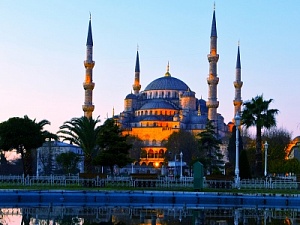 Стамбул - огромный город с населением около 17 миллионов жителей. Через него проходит пролив Босфор. Этот византийский город, ранее носивший название Константинополь, был завоеван турками в 1453 году, и его прекрасная церковь, Айя-София, стала мечетью. Теперь она превращена в музей. Вблизи от нее стоит знаменитая Голубая мечеть, строительство которой было закончено в 1616 году. Попутешествовав по Турции, вы заметите, что большинство мечетей страны напоминает своей архитектурой эти два основных строения.
